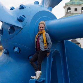 Das Restaurant Blitz auf der Museumsinsel hat jetzt am Mittag geöffnet. Hier sitzt man unter Bäumen am Wasser.